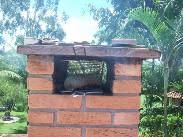 Muito criativo esse churrasco. Durante um evento no lago sul conheci um forma diferente de assar a picanha. No alto da churrasqueira, lá na pontinha do chaminé é colocada uma picanha para assar lentamente somente com o calor que sobe da churrasqueira.
