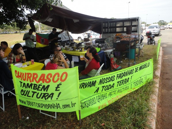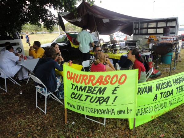Com esse intuito Doutor Picanha fez uma manifestação no parque da cidade em Brasília em prol da cultura do churrasco.